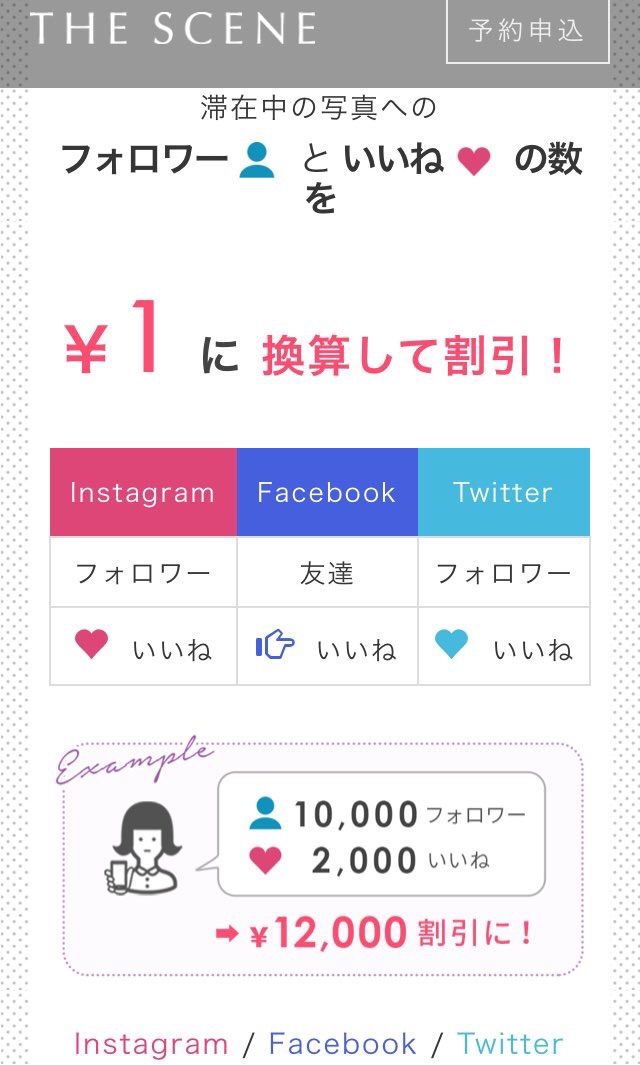SNSのフォロワーが多ければ多いほど割引が受けれちゃう!滞在中のSNS投稿のいいね!も割引換算。